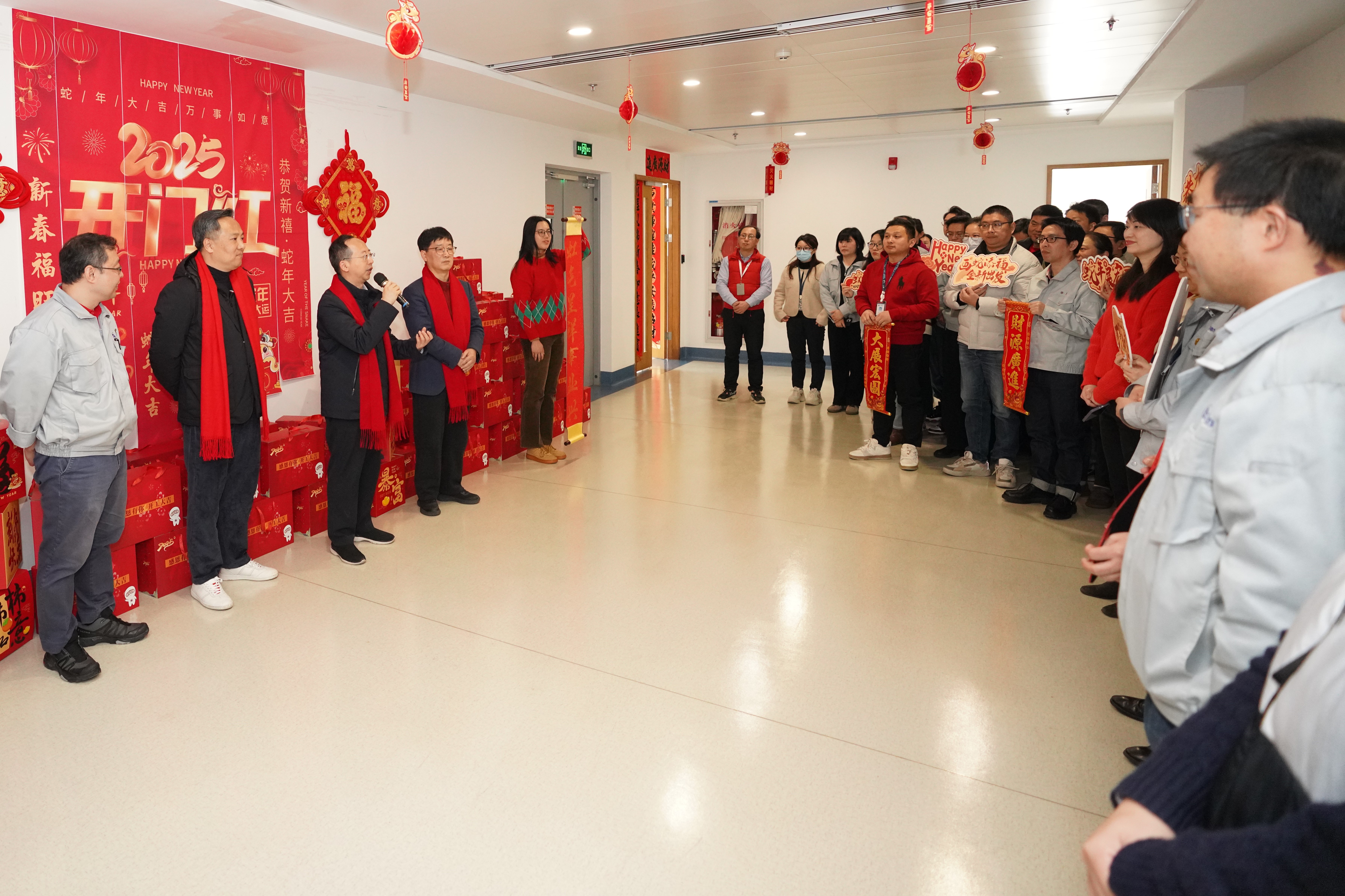 2月5日,蛇年開工首日,華虹集團黨委書記、董事長秦健帶領集團黨政領導班子成員分別到集團總部和下屬公司慰問員工,向大家致以新春美好的祝愿,激勵員工拿出蛇行千里的勁頭開啟新一年的工作。